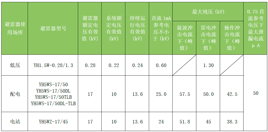 0.28~17kV 系列复合外套金属氧化物避雷器